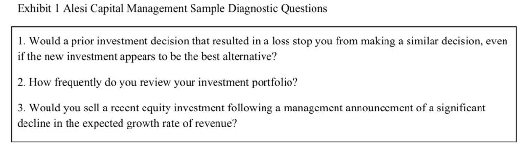 Identify the behavioral bias thateach diagnostic question in Exhibit 1 is most likely to reveal.