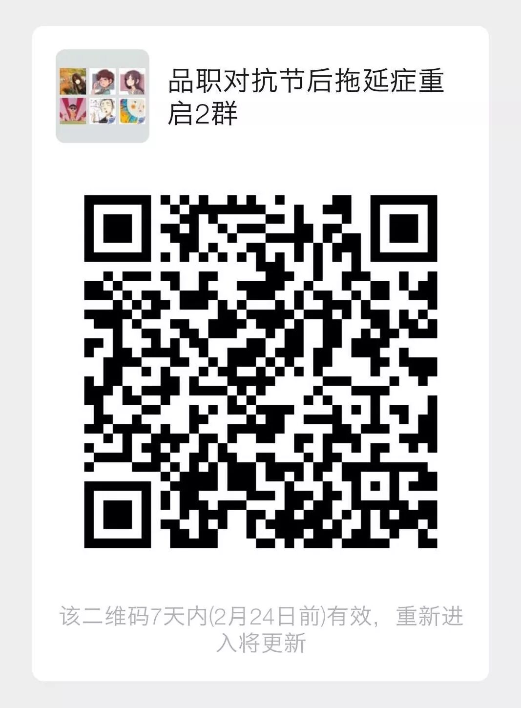 本周我们会继续组建对抗节后拖延症打卡群,希望能帮助大家培养习惯,顺利启动学习,等到百日行动时可以有点余量,不至于手忙脚乱。有需要的同学就扫码加入吧~(上周已经加入的同学不用重复加入,本群功能一样)同时,我们也会在群内通知我们的直播间。