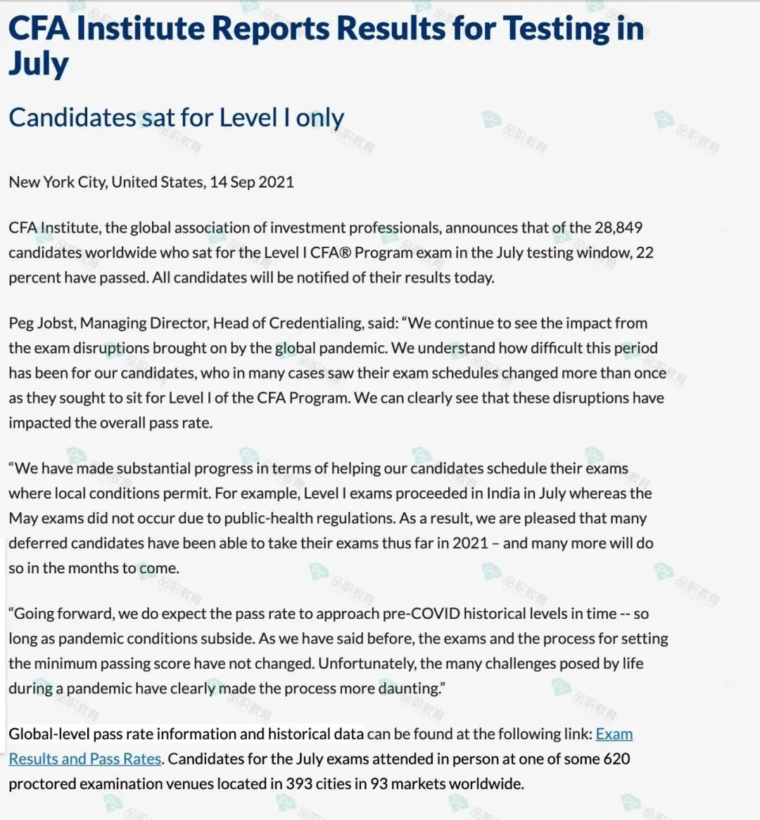 协会认为是,5&7月考试是持续受到全球疫情带来的考试中断的影响,很多一级考生的考试时间安排被多次更改,特别提到,在这次7月考试中,有很多之前因疫情无法参加考试的国外地区考生(包括印度)参加考试,他们认为,多次被延期更改&各种疫情压力对大家的备考产生了比较大的影响,从而进一步影响了整体通过率。(这也就是5月考期出分时,协会提到的stop-start nature,考试一延期大家就停止学习,等到下一次考试临近又开始学)