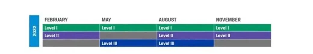 三级考期数量保持不变,但是时间做出了调整,原本11月考期是在5月和11月,但是协会重新调整到了5月和8月。
