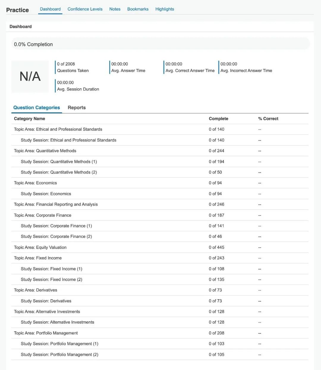 如果是自学的,可以利用一下CFA官网这个Practice Question,整体Practice Question的题量很大,很对想用题海战术小伙伴的口味;另外把题目按章节分类后,训练起来更有针对性。
