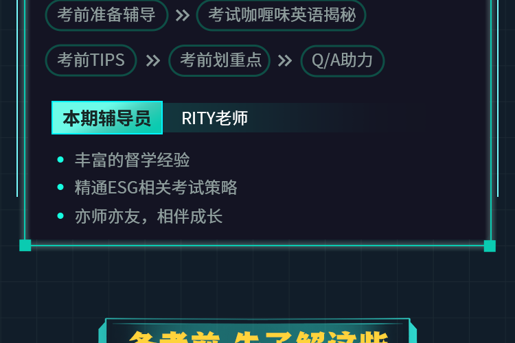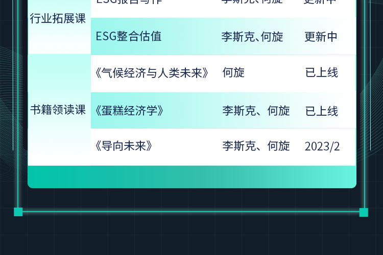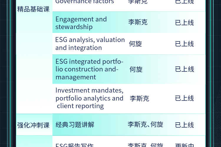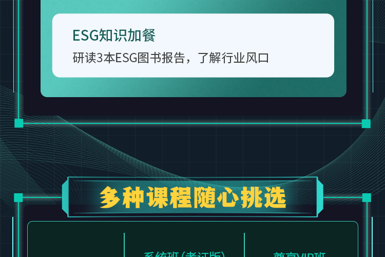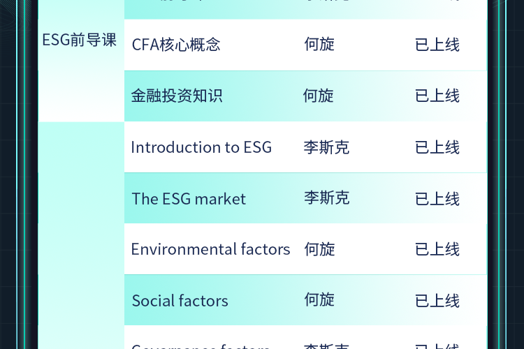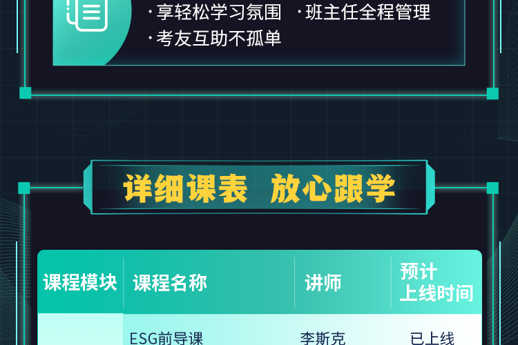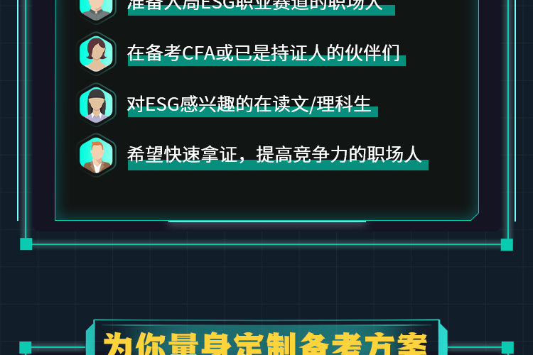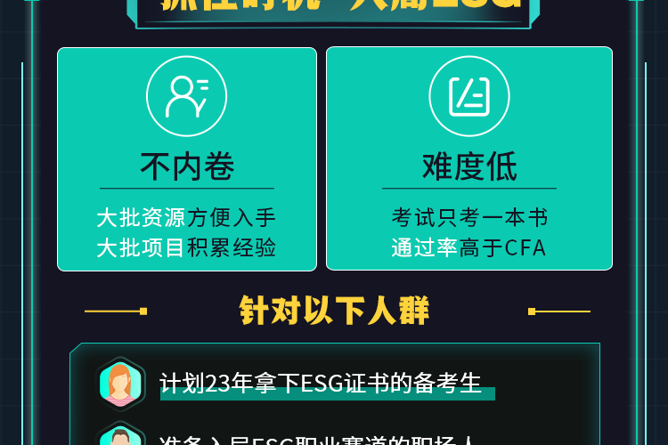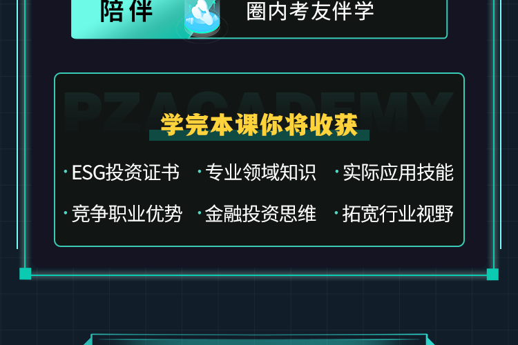 【适用人群】 想要系统学习ESG相关金融知识,快速通过考试并拓展投资领域实操应用的学员